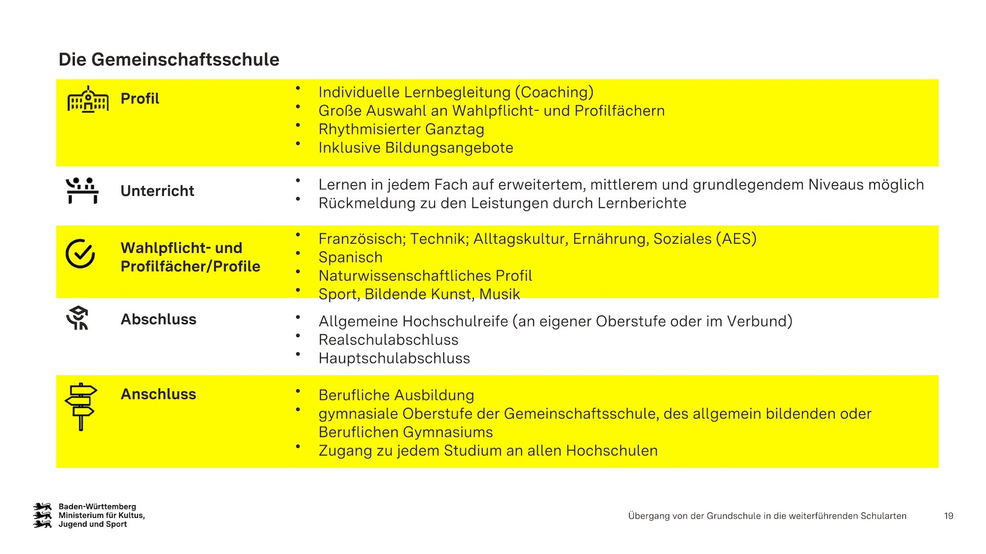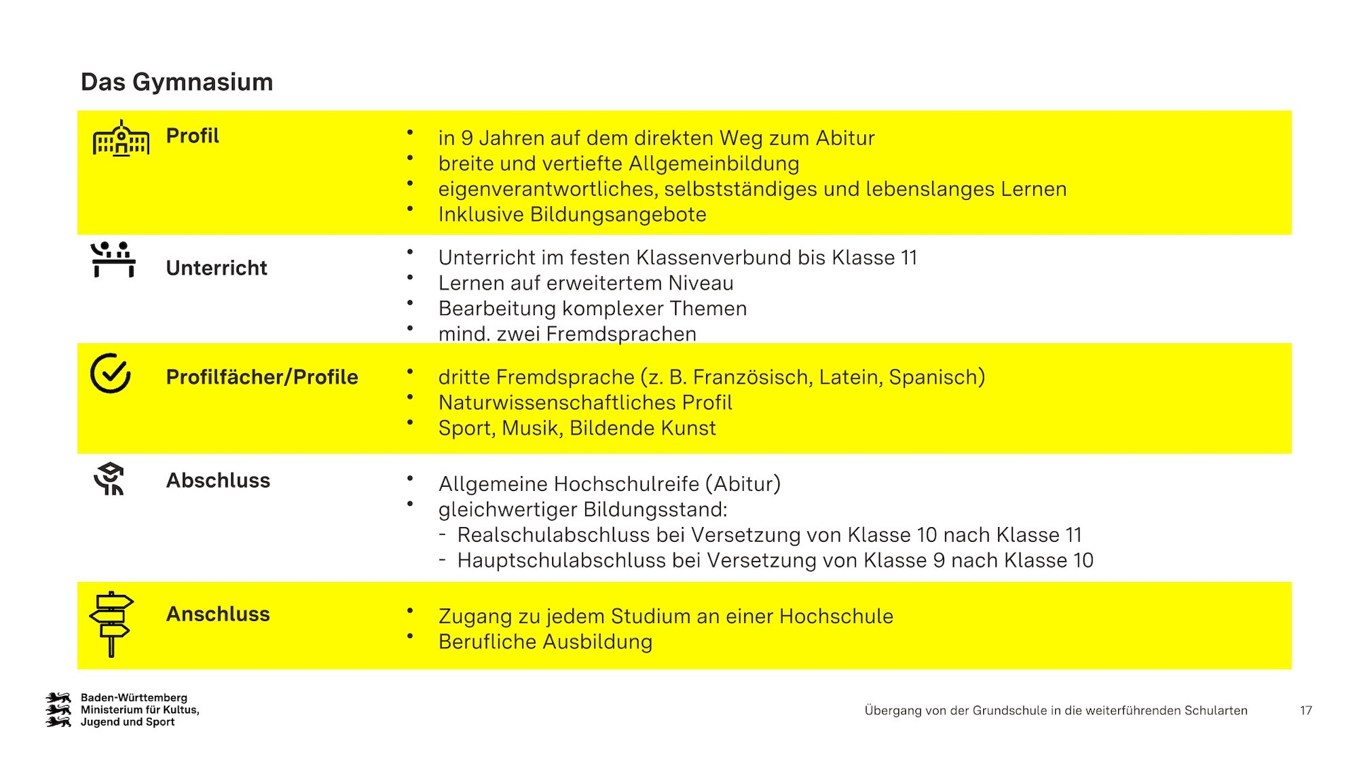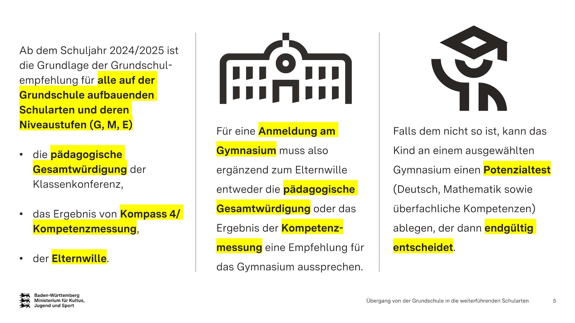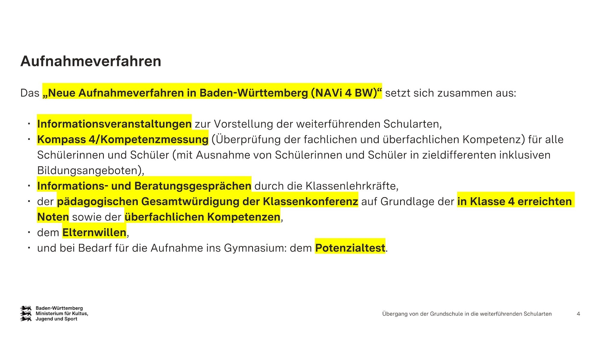 Übergang von der Grundschule in die weiterführenden Schularten