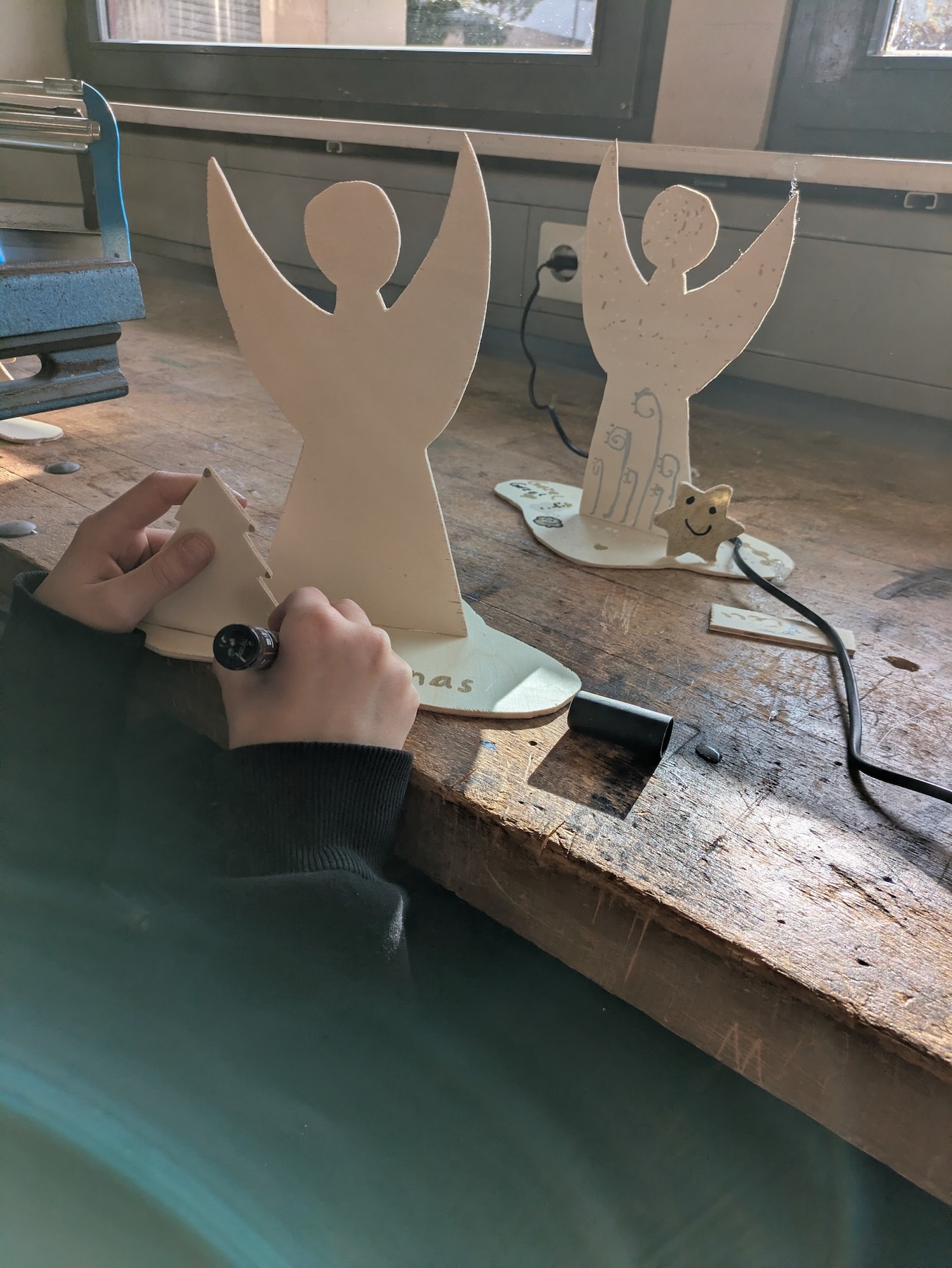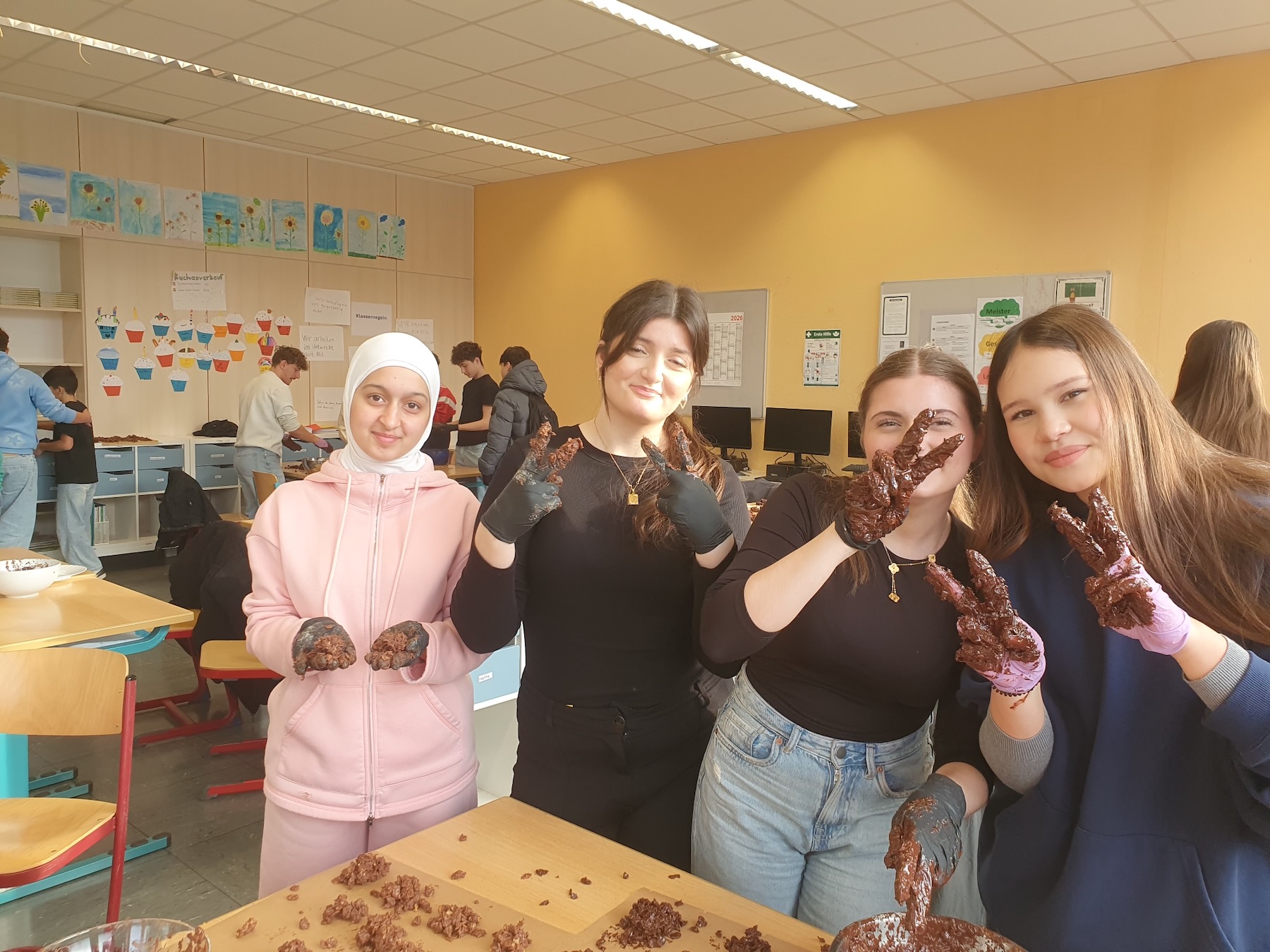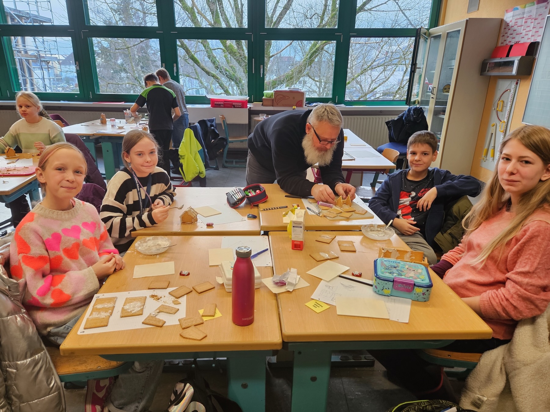 Die Schülerinnen und Schüler konnten aus einem bunten Angebot an Projekten wählen. Beim Backen von Zaubernüssen und in der Weihnachtsbäckerei duftete es herrlich nach frisch Gebackenem, während in einem anderen Raum Schoko Crossies geschmolzen, gemischt und verpackt wurden. Handwerklich ging es in der Gruppe „Weihnachtsdekoration aus Holz“ zu, in der unter fachkundiger Anleitung dekorative Unikate entstanden. Ebenfalls beliebt war das Binden von Gestecken und Adventskränzen, bei dem die Teilnehmenden ihrer Kreativität freien Lauf lassen konnten.