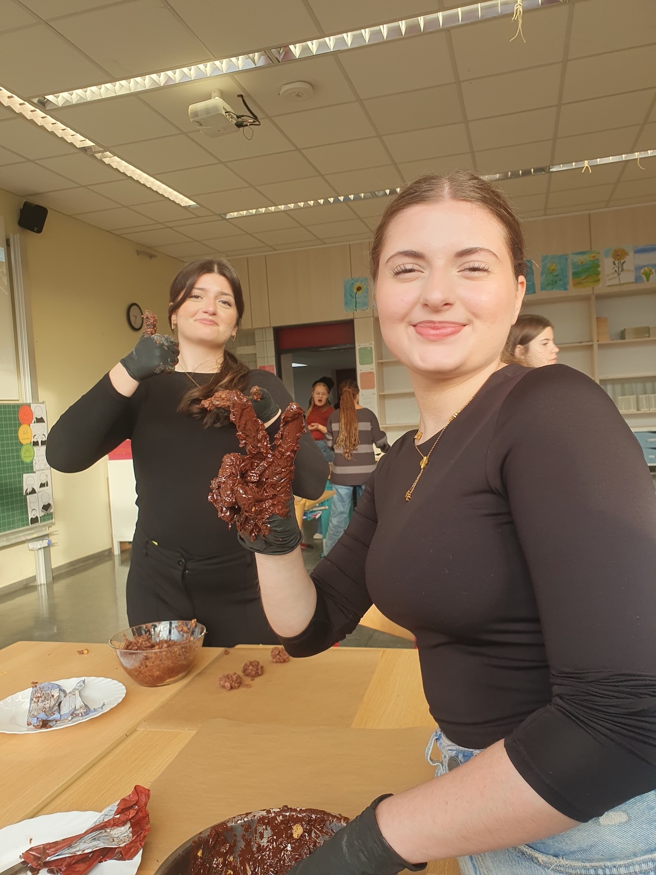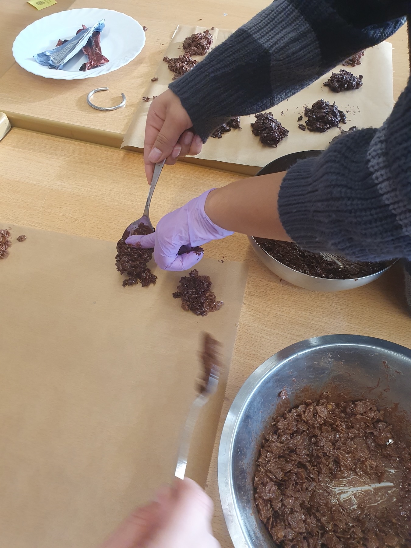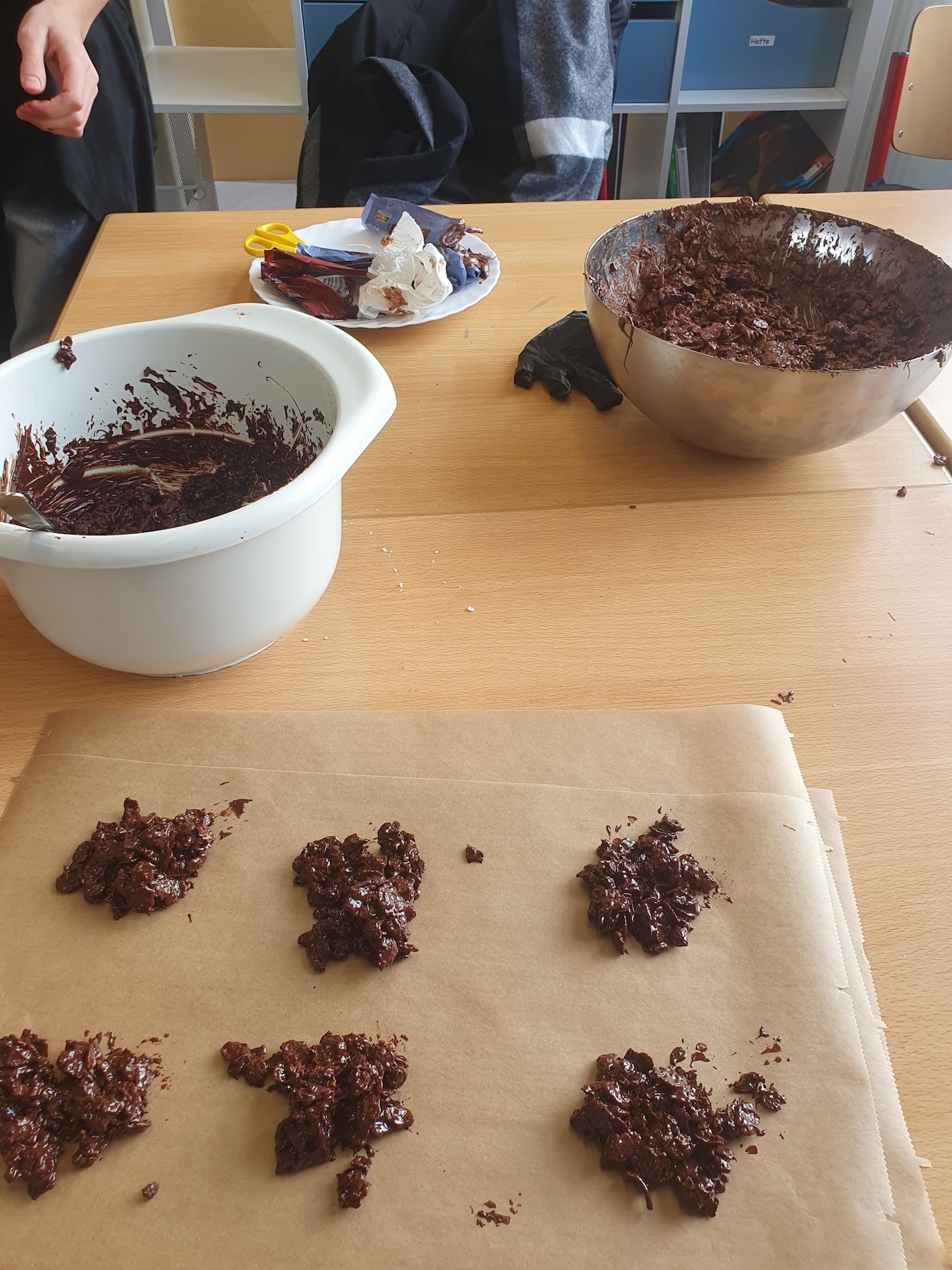 Die Schülerinnen und Schüler konnten aus einem bunten Angebot an Projekten wählen. Beim Backen von Zaubernüssen und in der Weihnachtsbäckerei duftete es herrlich nach frisch Gebackenem, während in einem anderen Raum Schoko Crossies geschmolzen, gemischt und verpackt wurden. Handwerklich ging es in der Gruppe „Weihnachtsdekoration aus Holz“ zu, in der unter fachkundiger Anleitung dekorative Unikate entstanden. Ebenfalls beliebt war das Binden von Gestecken und Adventskränzen, bei dem die Teilnehmenden ihrer Kreativität freien Lauf lassen konnten.