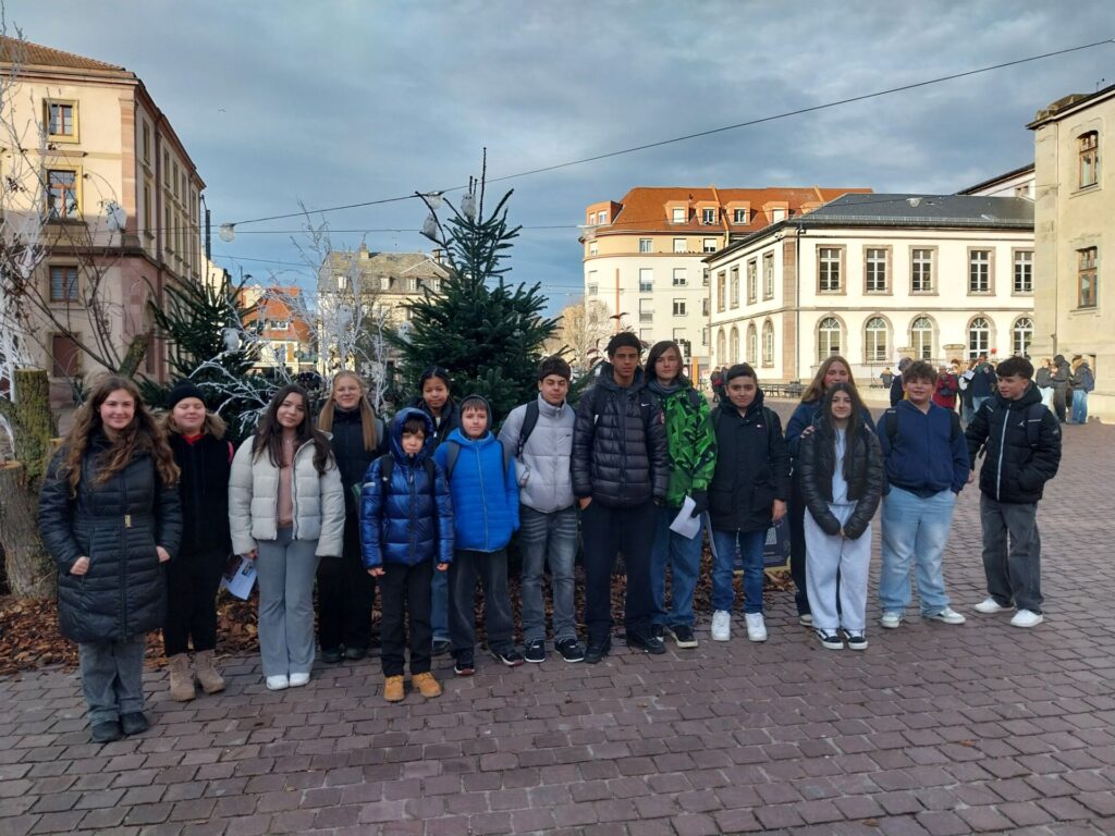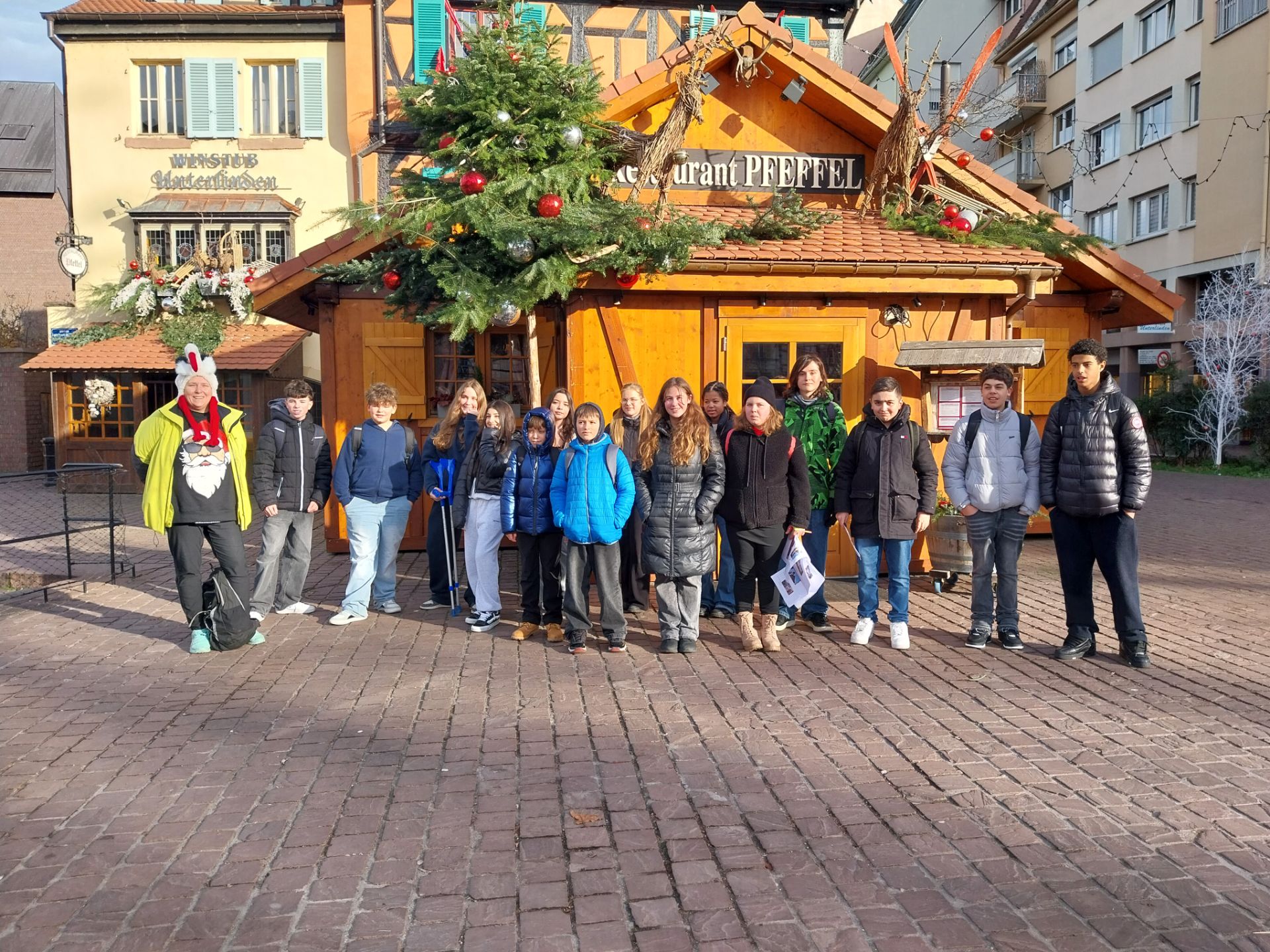 Am 2. Dezember machten sich die Französischschülerinnen und -schüler der Klassen 7 und 8 auf den Weg ins elsässische Colmar, um den dortigen Weihnachtsmarkt zu besuchen und die Stadt zu erkunden. Schon bei der Ankunft wurden alle von der festlichen Atmosphäre empfangen: bunt geschmückte Fachwerkhäuser, funkelnde Lichterketten und der Duft von Crêpes, Gewürzen und heißem Apfelsaft sorgten sofort für weihnachtliche Stimmung.