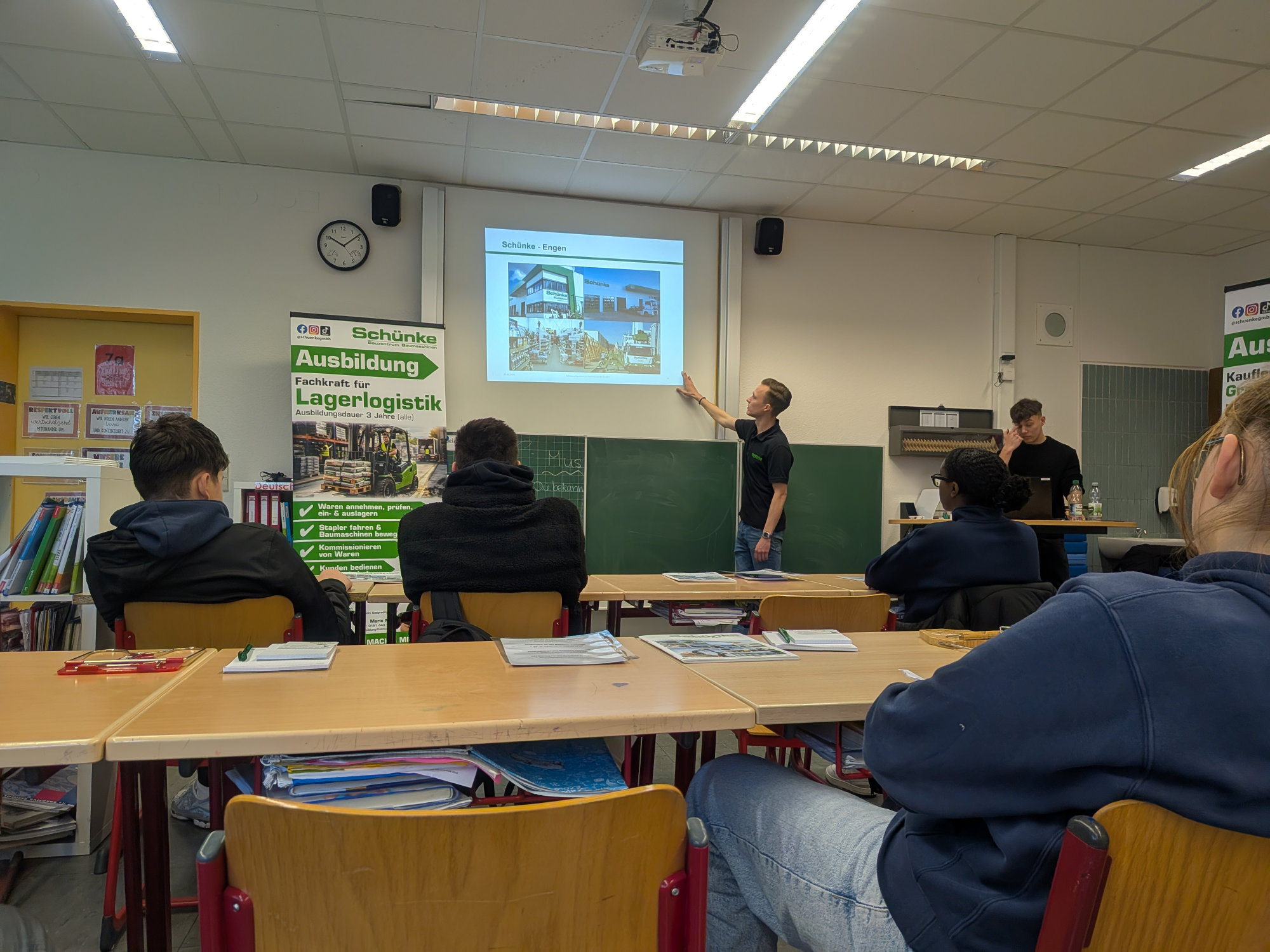 Handwerklich ging es bei Putz-Stuck-Bär zu: Hier konnten die Schülerinnen und Schüler erfahren, wie Innen- und Außenwände gestaltet werden und welche kreativen Möglichkeiten der Beruf des Stuckateurs bietet. Auch das Schünke Bauzentrum aus Wehr präsentierte Berufe rund um Bau und Technik und zeigte, welche Perspektiven beispielsweise als Baugeräteführer oder im Baustoffhandel bestehen. Abgerundet wurde das Angebot durch die Industrie- und Handelskammer Freiburg und die Handwerkskammer Konstanz, die gemeinsam mit ihren Ausbildungsbotschafterinnen und -botschaftern über das duale Ausbildungssystem informierten. Besonders wertvoll war dabei der direkte Austausch mit jungen Menschen, die selbst noch in der Ausbildung stehen und authentisch von ihrem Berufsalltag berichten konnten.