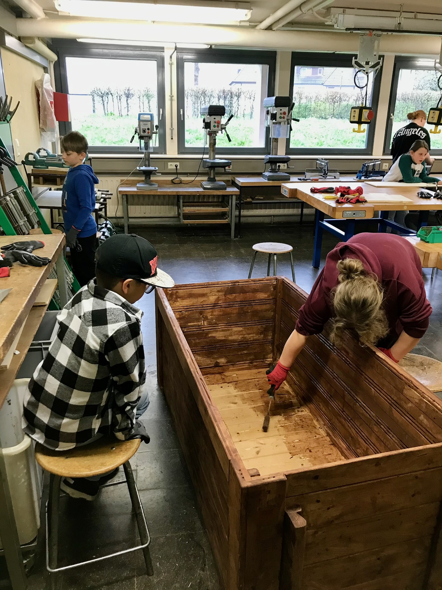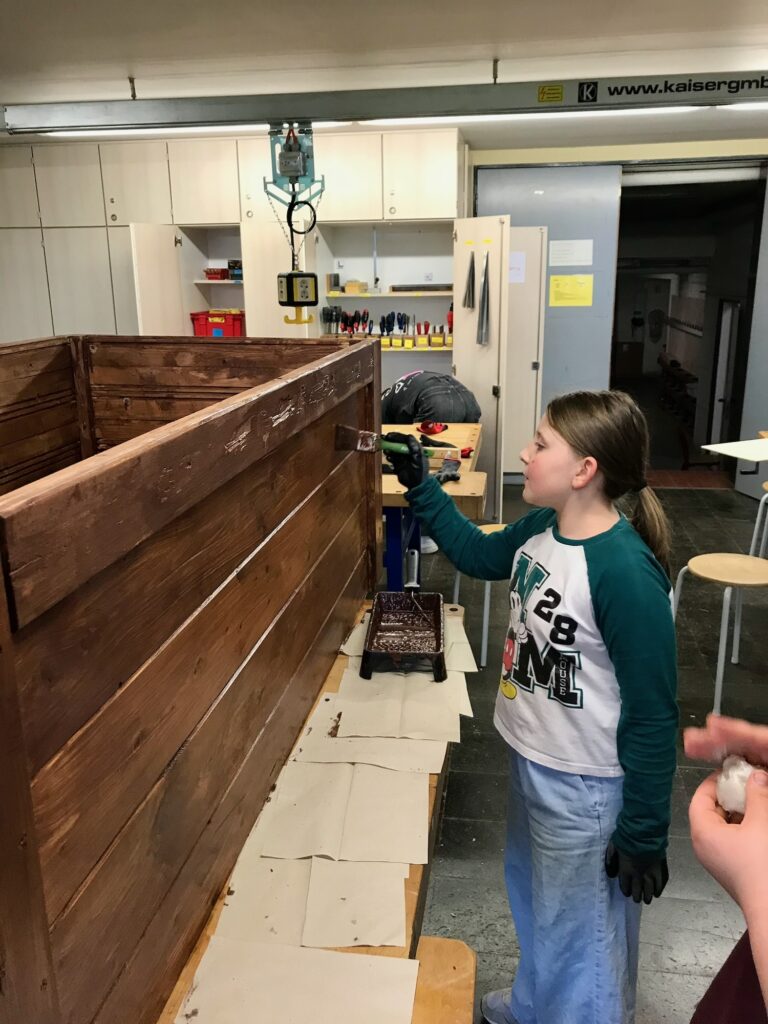 Zu Beginn wurde erst einmal der Ablauf der gesamten Woche besprochen. Montags startete der „Fahrplan“ mit dem Abschleifen der Hochbeete. Ebenso konnten die Schülerinnen und Schüler verschiedene Osterhasen aus Holz herstellen, welche als Geschenke oder zur Dekoration gefertigt wurden.