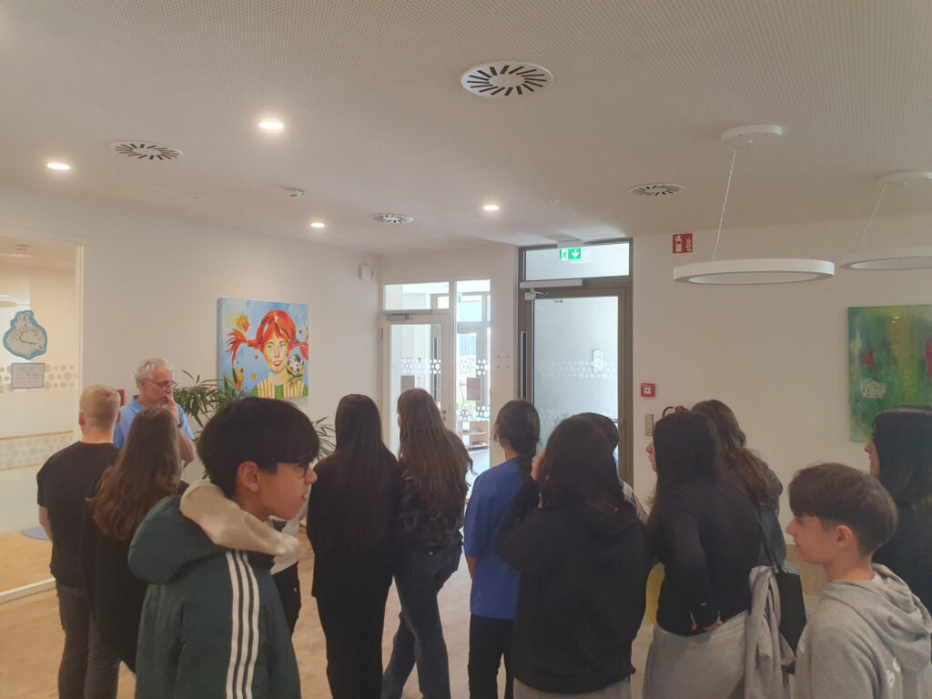 Während des Besuchs im neuen Elternhaus des Vereins hielt Herr Müller einen informativen Vortrag. Er erklärte die Aufgaben des Vereins und erläuterte, wofür die Spendengelder eingesetzt werden. Die Schülerinnen und Schüler nutzten die Möglichkeit, offene Fragen zu stellen. Anschließend wurde ein Teil des Elternhauses besichtigt. Interessant für Ältere: in der Geschwisterinsel besteht die Möglichkeit, ein Praktikum zu absolvieren (mindestens eine Woche, Mindestalter: 15 Jahre).